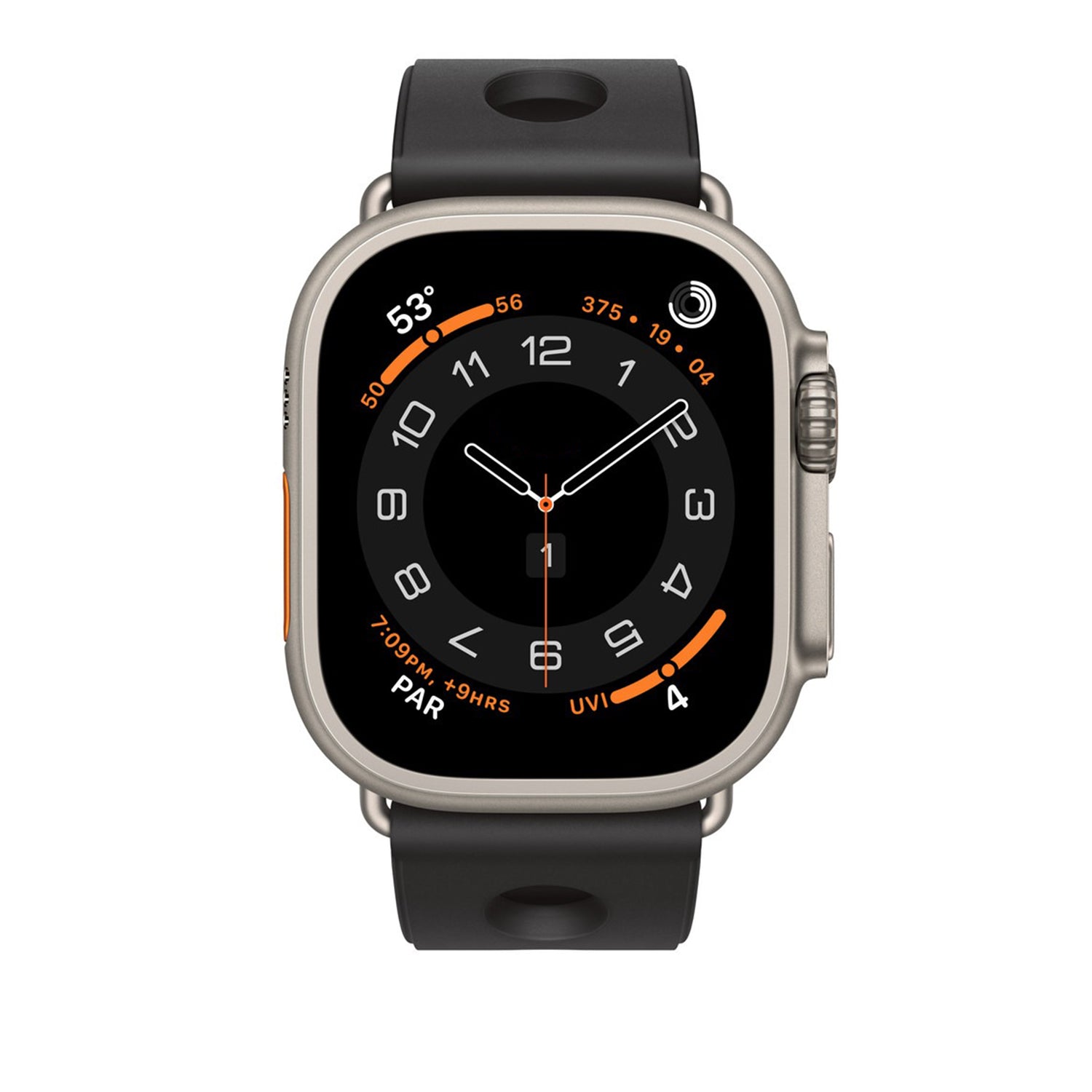 Best matched with 49 mm Apple Watch models, offering the intended form and balance.